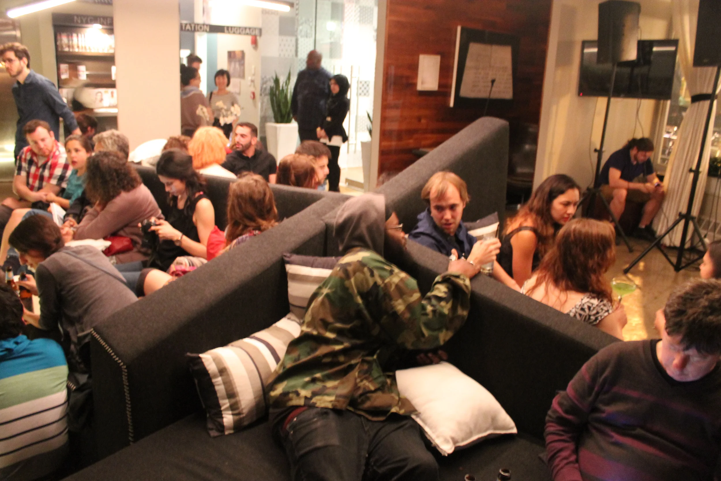 Group visits up to the hotel suite to view a work in progress of the 24 hour collaboration followed by an intimate performance by the individual 3 to 1 collaborators in the hotel lobby featuring the 3 to 1 artists.