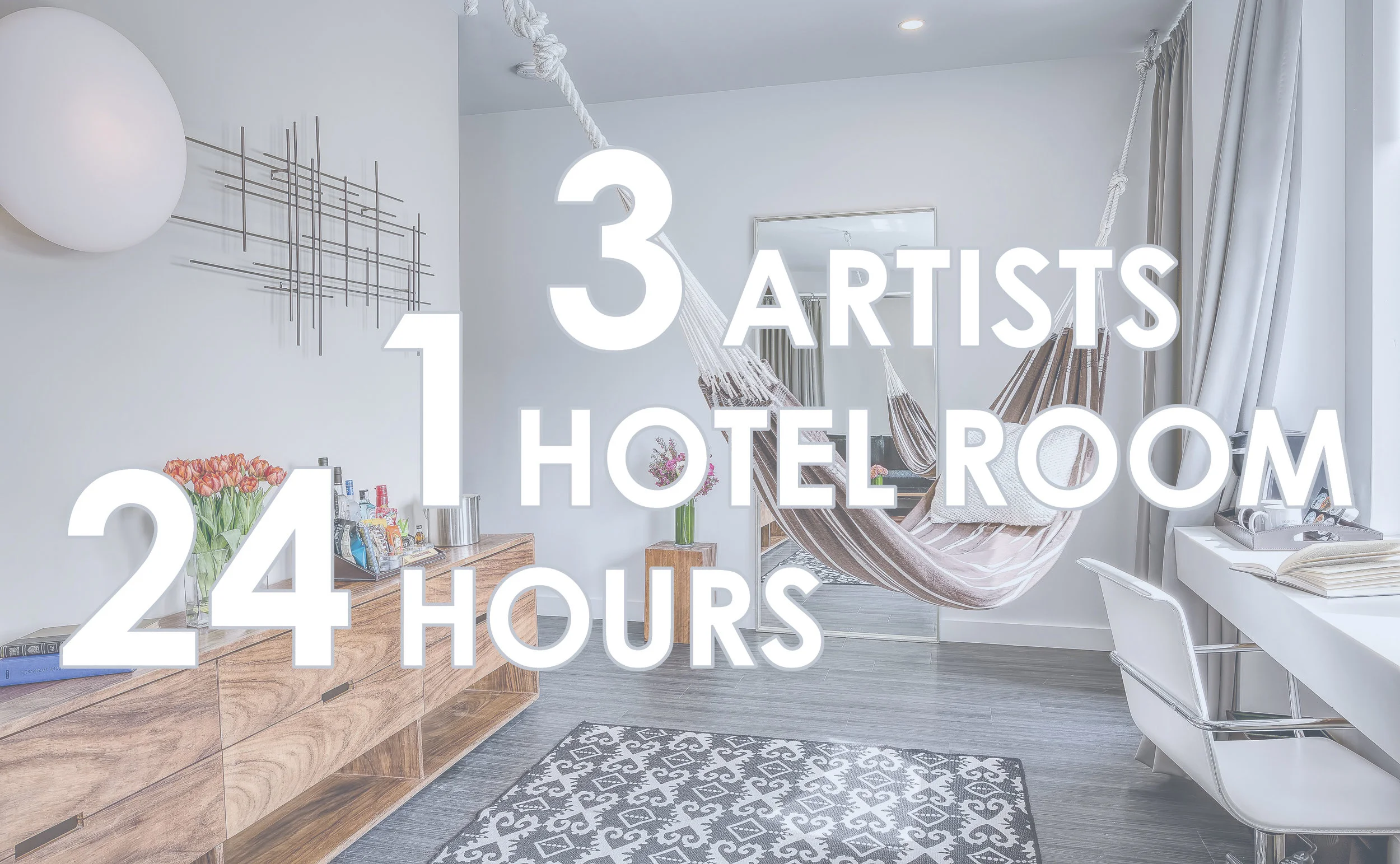 THREE BROOKLYN BASED ARTISTS SPEND 24 HOURS IN A HOTEL ROOM COLLABORATING FOR THE FIRST TIME TO CREATE AN INTERDISCIPLINARY INSTALLATION PRESENTED TO AN AUDIENCE WHILE IN PROCESS AND AFTER COMPLETION.